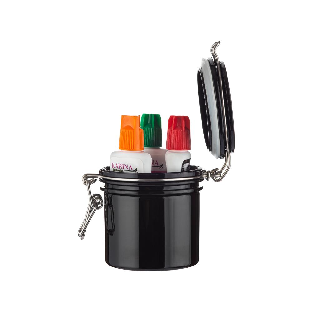 – recipientul permite pastrarea adezivului, folosit la aplicarea extensiilor de gene, in cele mai bune conditii.